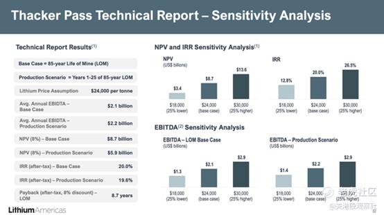 该公司在测算时,将锂价目标设定为每吨2.4万美元,并考虑了每吨1.8万至3万美元的价格区间,据此得出了可观的EBITDA及资产净值预测。数据显示,若锂价维持在每吨2.4万美元,LAC调整后EBITDA有望达到22亿美元,净现值(NPV)则可达87亿美元。